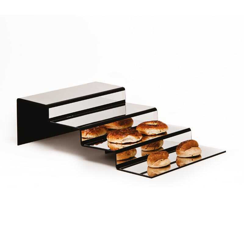 Oteller, restoranlar, kafeler, pastaneler ve açık büfelerde; tatlı, meze, atıştırmalık ve benzeri ürünlerin düzenli, hijyenik ve profesyonel şekilde sergilenmesi için ideal bir aynalı merdiven teşhir standıdır.