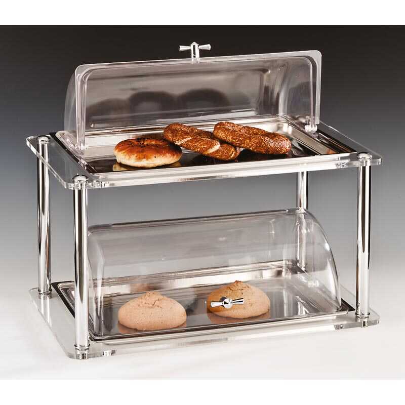 Zicco ZCP-283 Teşhir Standı, Rolltop Kapaklı, Çelik Tepsili, 2 Katlı, 46 cm