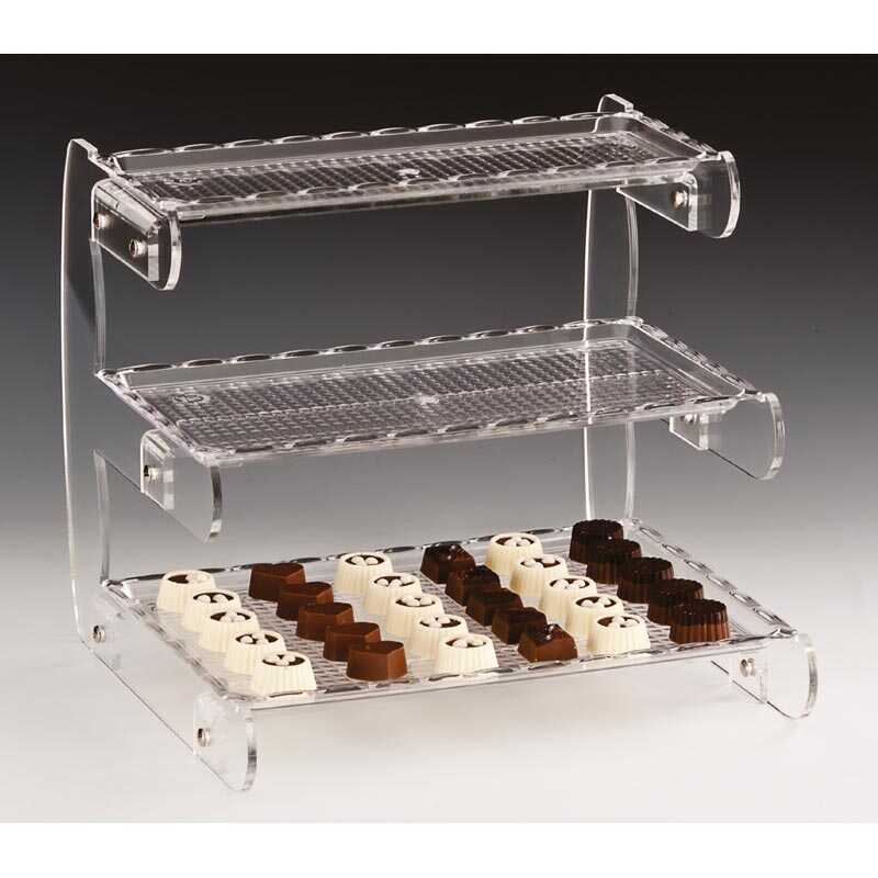 Oteller, restoranlar, kafeler, pastaneler ve açık büfelerde; tatlı, meze, atıştırmalık ve benzeri ürünlerin düzenli, hijyenik ve profesyonel şekilde sergilenmesi için ideal bir polikarbon 3 katlı teşhir standıdır.