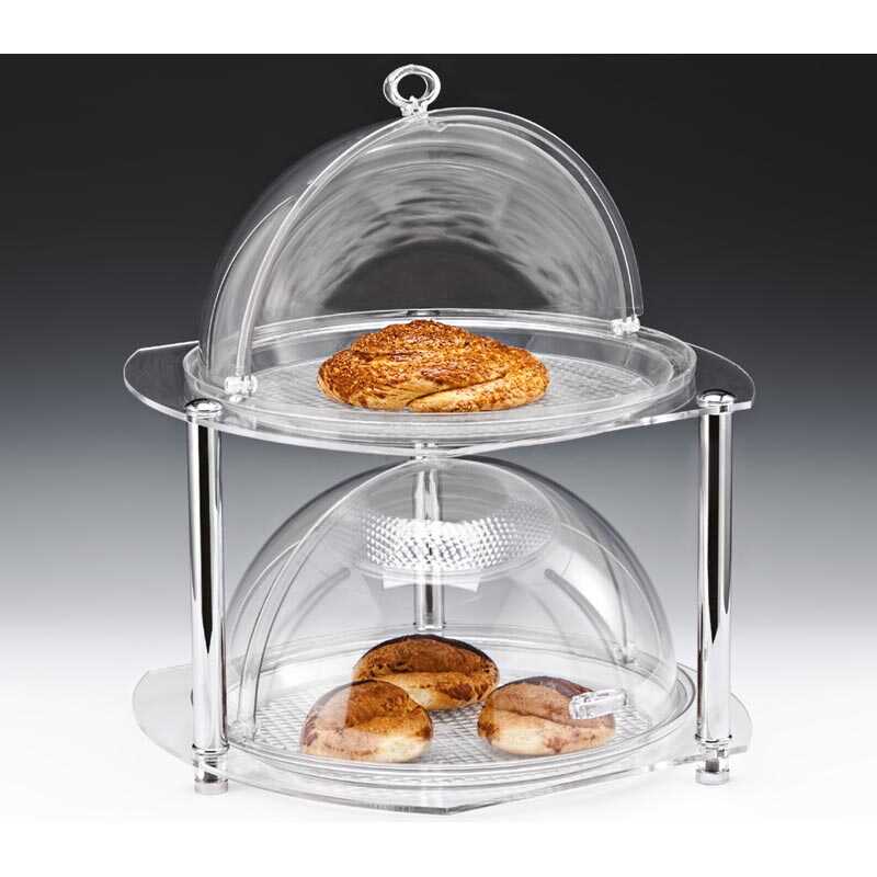 Oteller, restoranlar, kafeler, pastaneler ve açık büfelerde; pasta, tatlı, unlu mamul ve benzeri ürünlerin hijyenik, düzenli ve profesyonel şekilde sergilenmesi için ideal bir rolltop kapaklı polikarbon teşhir standıdır.
