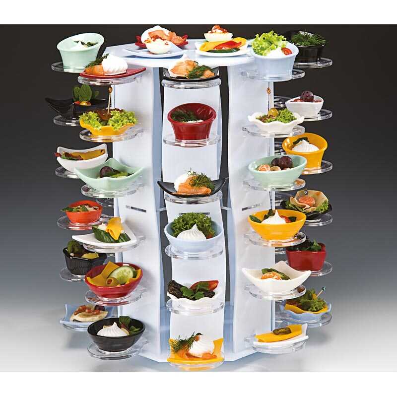 Dayanıklı malzeme yapısı uzun süreli kullanım avantajı sağlarken döner mekanizması ürünlere kolay erişim imkânı verir. Profesyonel servis ve mağaza ortamlarında düzenli ve şık bir sunum oluşturmak için idealdir.