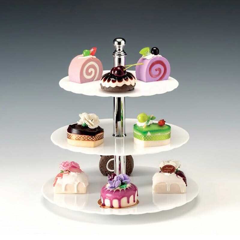 Zicco ZCP-713 Teşhir Standı, beyaz polikarbon malzemesi ve 3 katlı tasarımı ile tatlı, meze ve çeşitli sunum ürünlerinin düzenli, hijyenik ve estetik şekilde sergilenmesini sağlar. 31 cm yüksekliği ve kompakt kat boyutları, masa ve tezgâh üzerinde pratik kullanım imkânı sunar. Beyaz rengi, ürünlerin ön plana çıkmasını ve şık bir sunum yapılmasını destekler.