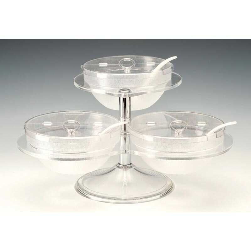 Restoranlar, kafeler, oteller ve açık büfelerde; meyve, salata, atıştırmalık ve çeşitli ürünlerin hijyenik, düzenli ve estetik şekilde sergilenmesi için ideal bir şeffaf polikarbon kaseli teşhir standıdır.