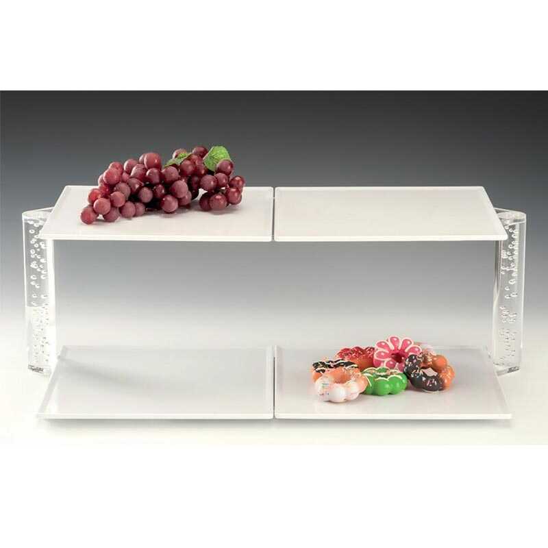 Zicco ZCP‑737 Melamin Tepsili Teşhir Standı, 2 katlı dayanıklı melamin tepsi yapısı ve beyaz rengi ile ürünlerin vitrin ve servis alanlarında etkili, düzenli ve estetik bir şekilde sergilenmesini sağlar. 67x40 cm ölçüleri sayesinde geniş ürün yerleşimine imkân tanır ve farklı servis konseptlerine uyum sağlar.