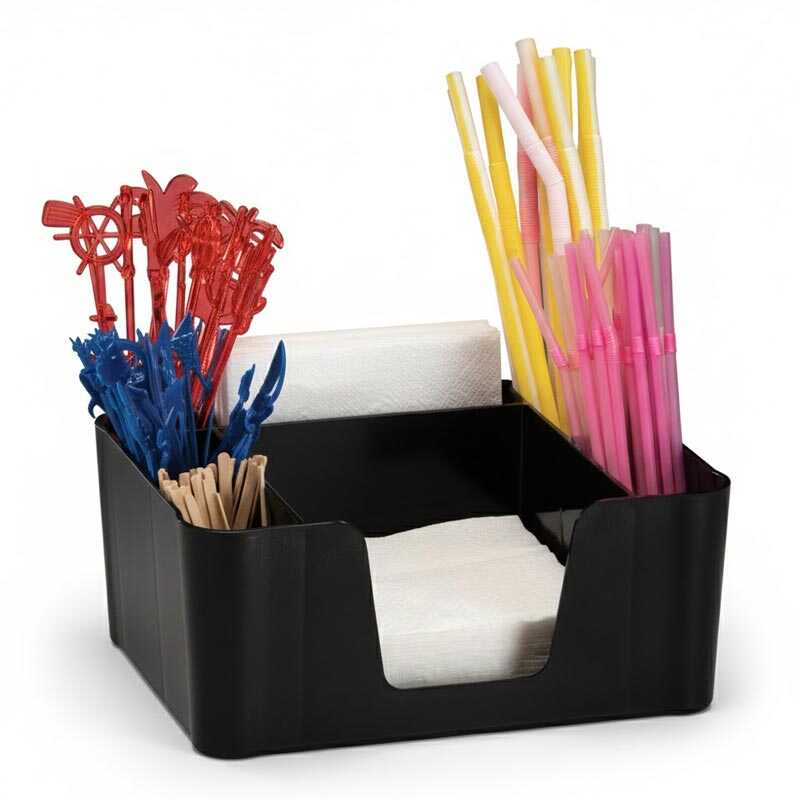Restoran, kafe, bar ve otel gibi yiyecek-içecek işletmelerinde pipet, peçete ve küçük servis gereçlerinin düzenli saklanması ve sunumu için uygundur.